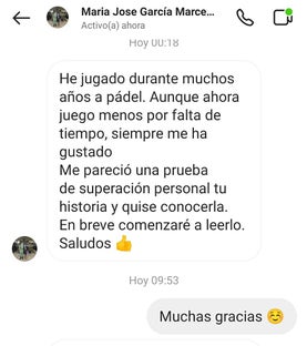 Muchas gracias a todos/as los que me habéis animado durante todo el proceso, a quien se ha interesado por mi libro y lo ha leído, regalado, recomendado... Siempre digo que es una lectura rápida y que no tienes por qué jugar al pádel ni pasar por un cáncer para que te entretenga. Dicen que es una lectura amena y trato de explicar mi experiencia y las herramientas que me fueron bien para mantener el ánimo mientras me curaba. Igualmente para quien se entretiene con mis blogs.